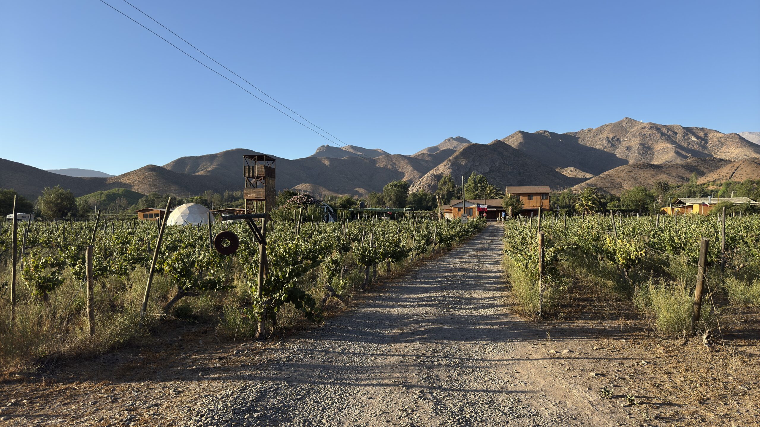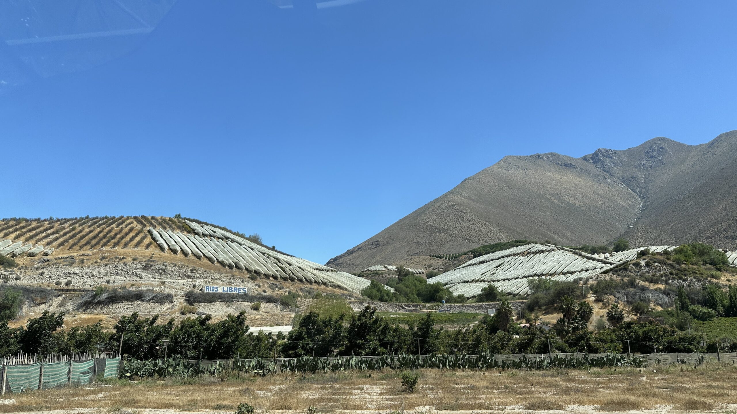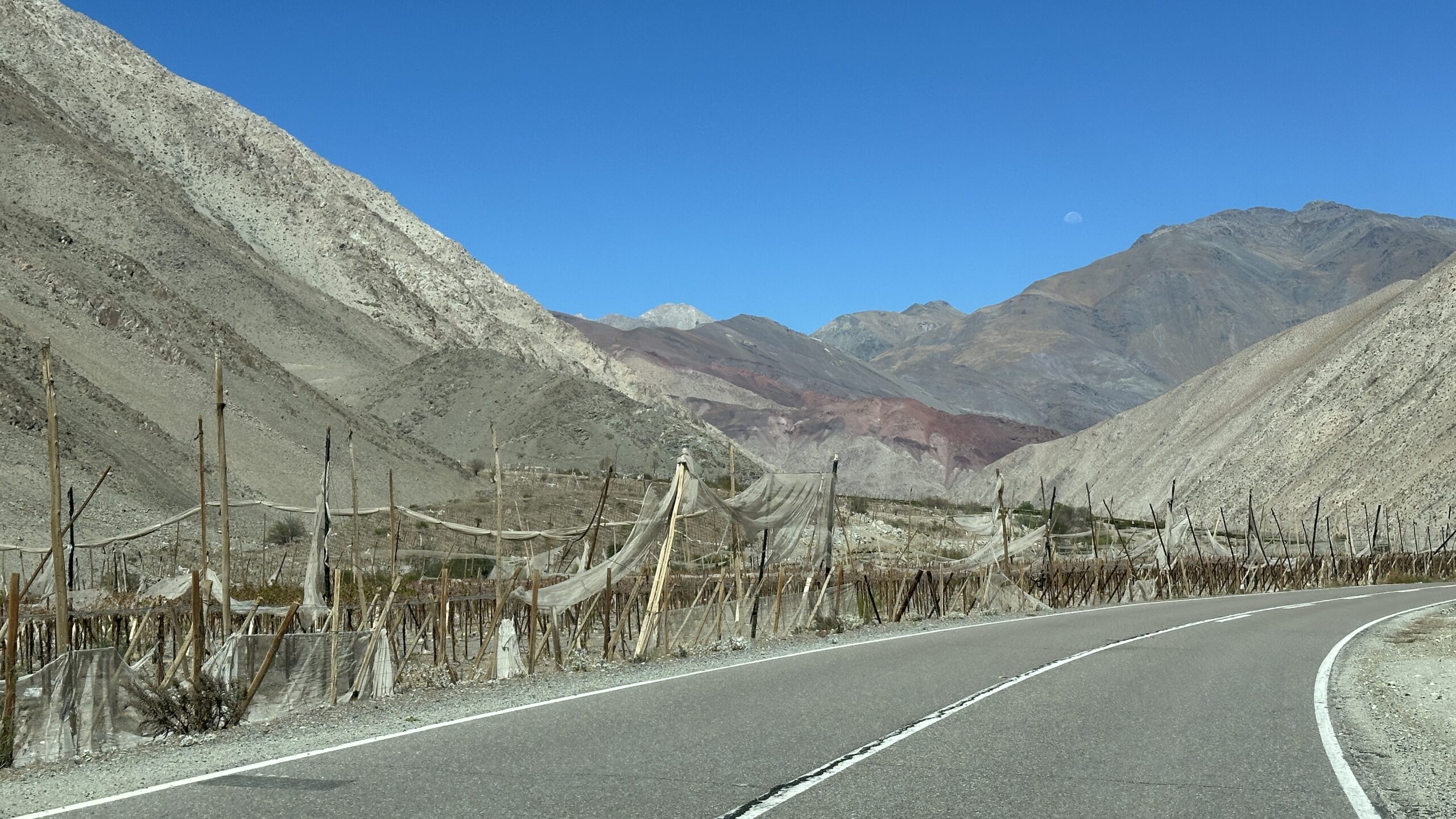 Wir fahren langsam das Tal hinab, Richtung Vicuña. Es wird langsam grün und grüner und „Guck mal, Weinreben“. Zu unserer Linken und Rechten verteilen sich Weinreben. Manchmal auch Obstplantagen. Wow. Damit haben wir nicht gerechnet. Würden wir Wein trinken, hätten wir gewusst, das Vicuña ein Weinanbaugebiet ist. Teilweise sehen wir auch Weinreben, die trocken sind, nicht gepflegt und die Netze zerrissen.