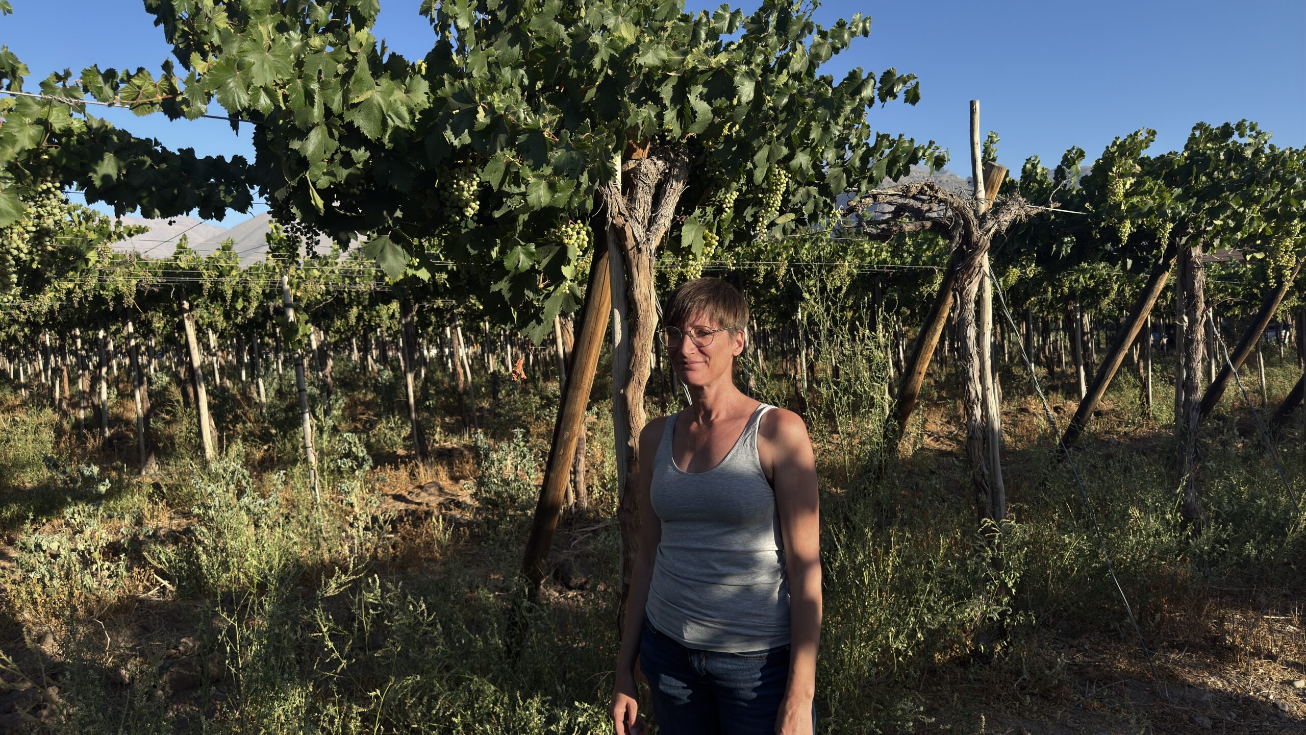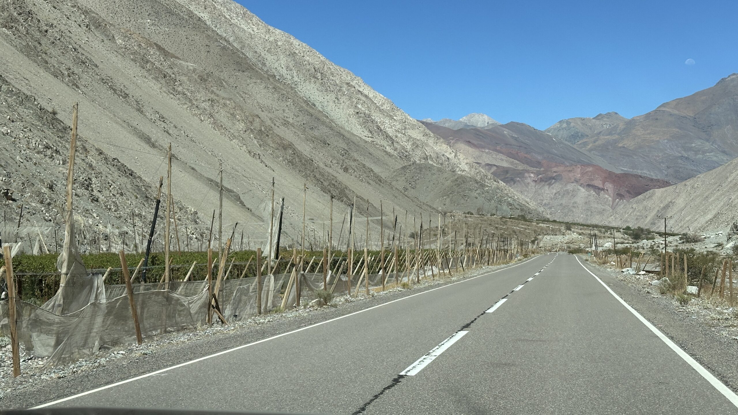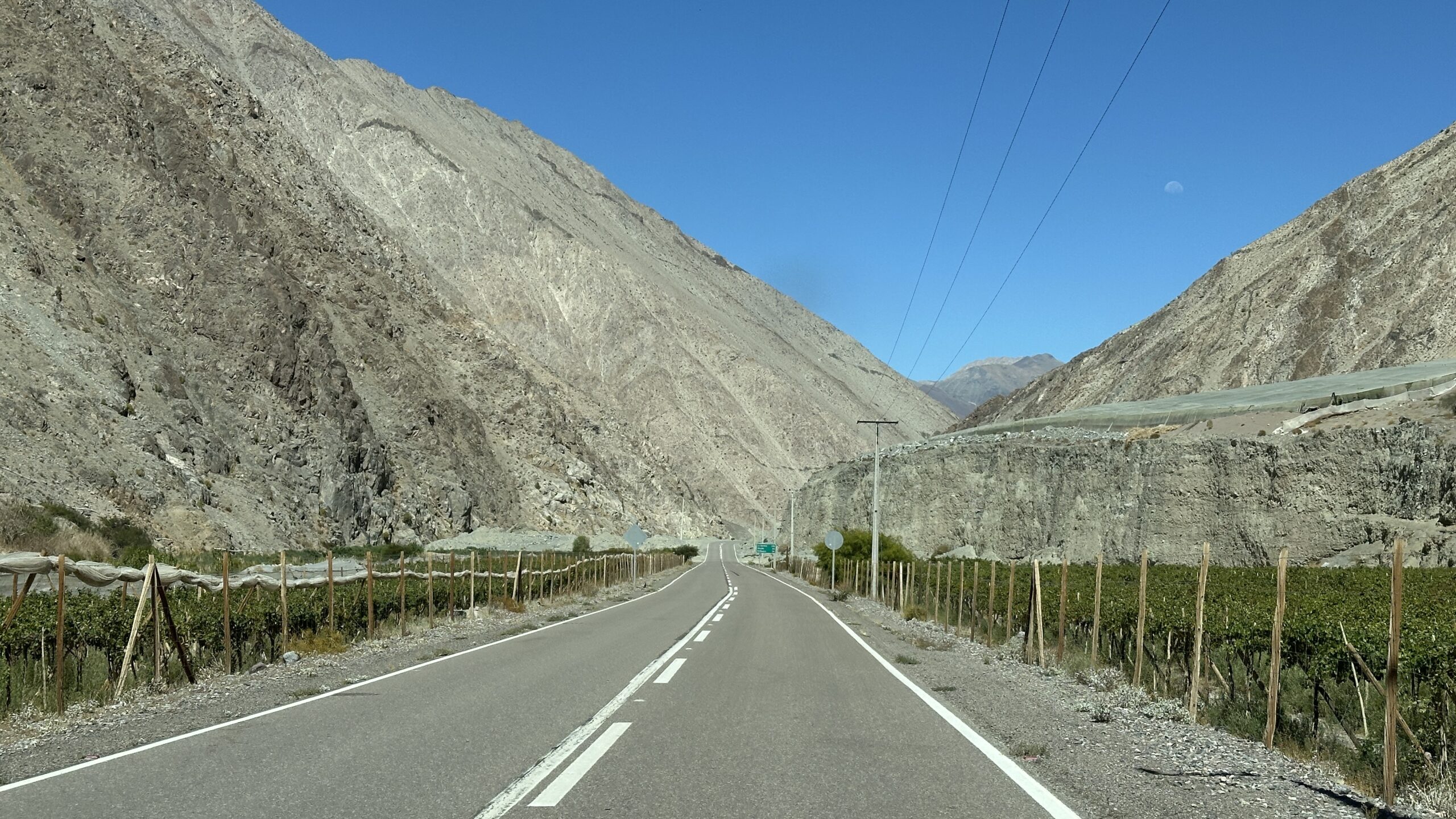 Wir fahren langsam das Tal hinab, Richtung Vicuña. Es wird langsam grün und grüner und „Guck mal, Weinreben“. Zu unserer Linken und Rechten verteilen sich Weinreben. Manchmal auch Obstplantagen. Wow. Damit haben wir nicht gerechnet. Würden wir Wein trinken, hätten wir gewusst, das Vicuña ein Weinanbaugebiet ist. Teilweise sehen wir auch Weinreben, die trocken sind, nicht gepflegt und die Netze zerrissen.