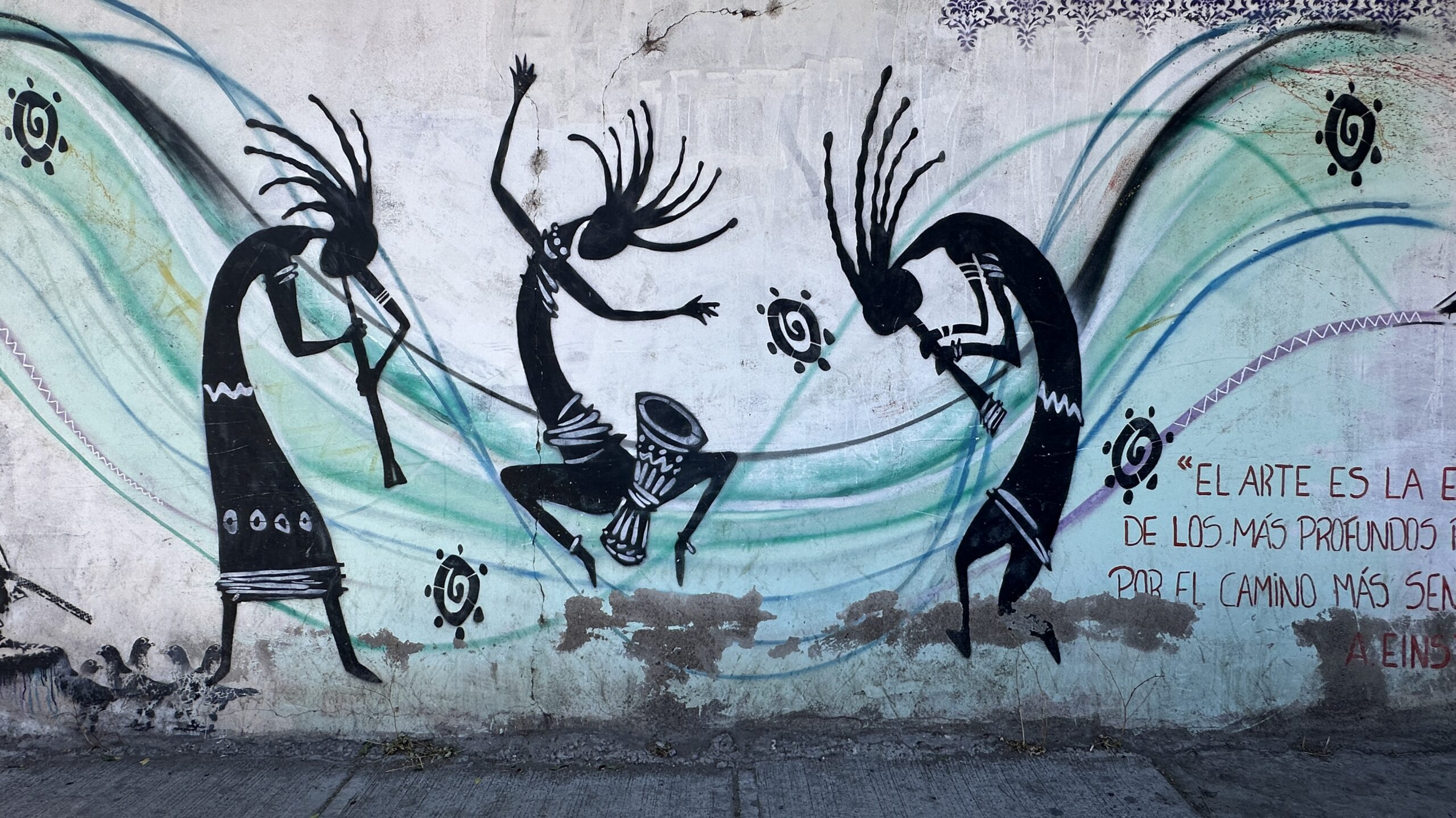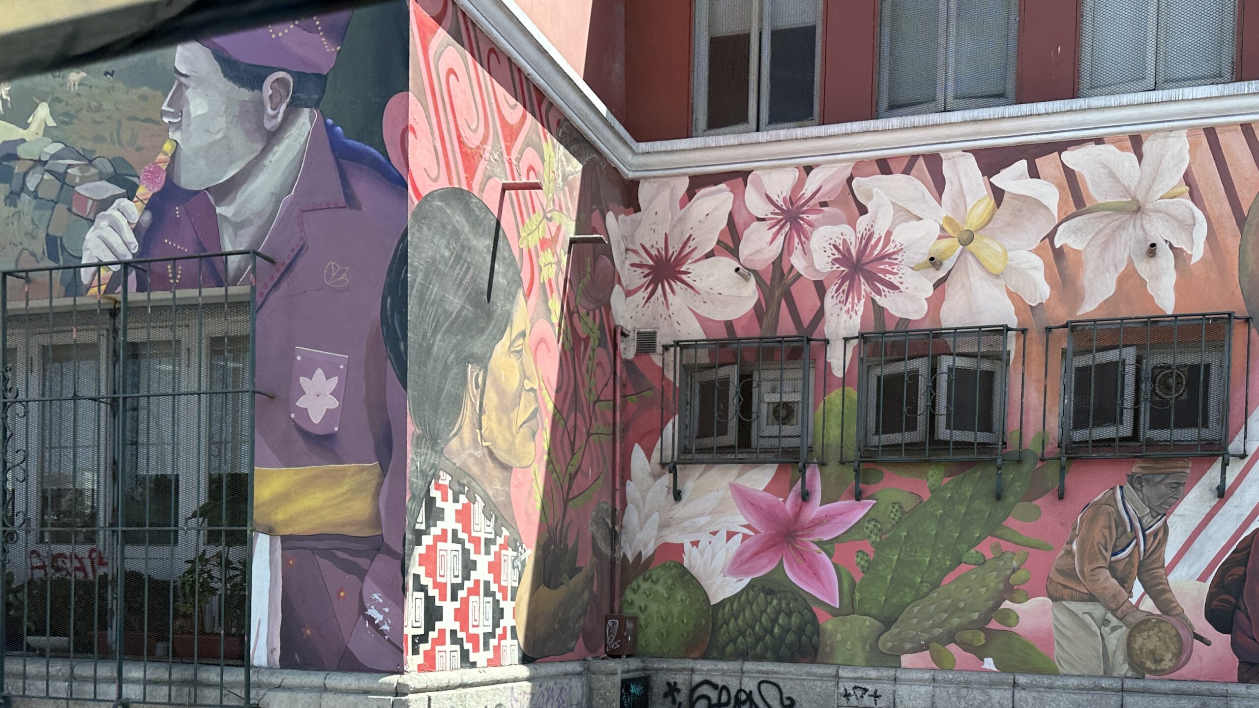 Wir müssen durch die Stadt „La Serena“. Der Stadtverkehr ist schlimm. Zu sehen gibt es für mich aber ein paar Dinge. Kunstvolle Kabelverlegung darf ich bestaunen, Wandschmiererein unterbrochen mit schönen Wandbildern.