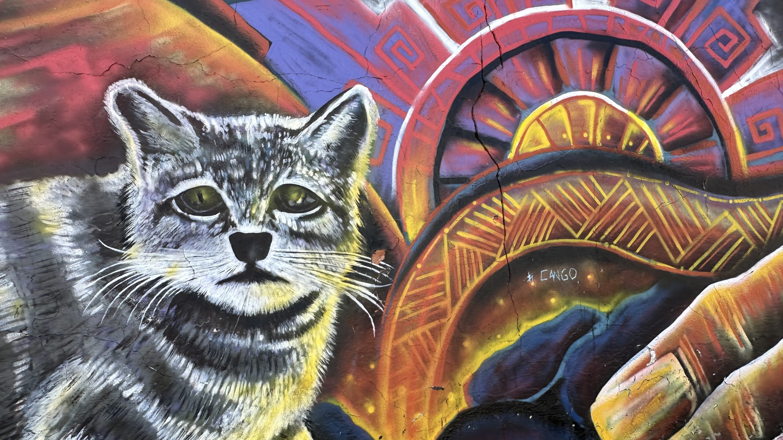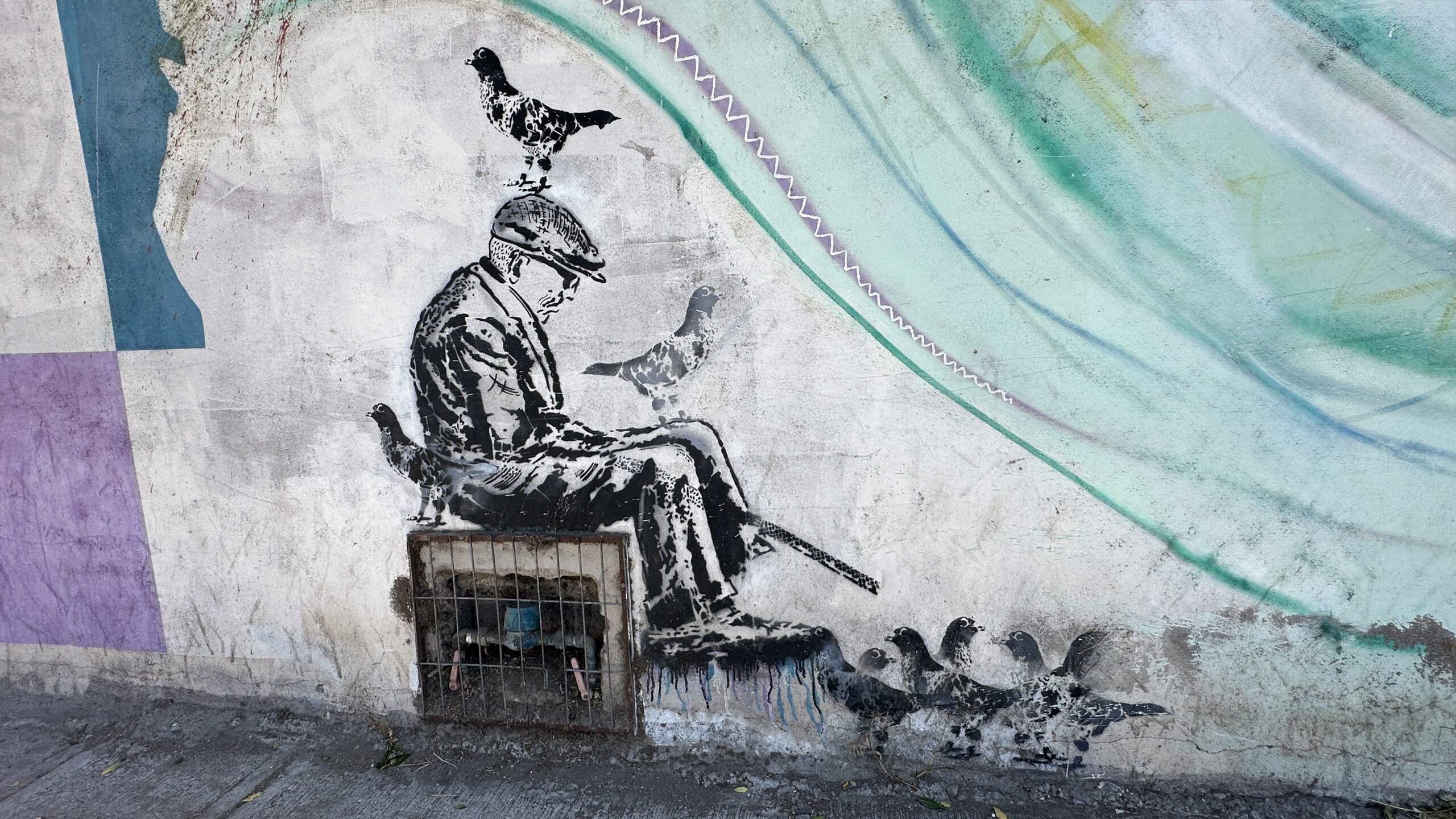 Wandmalereien sind nicht jedermanns Ding. Einige finde ich ansprechend und möchte sie dann auch „festhalten“. In diesem Fall hat ein Künstler eine Geschichte auf eine Mauer gemalt.