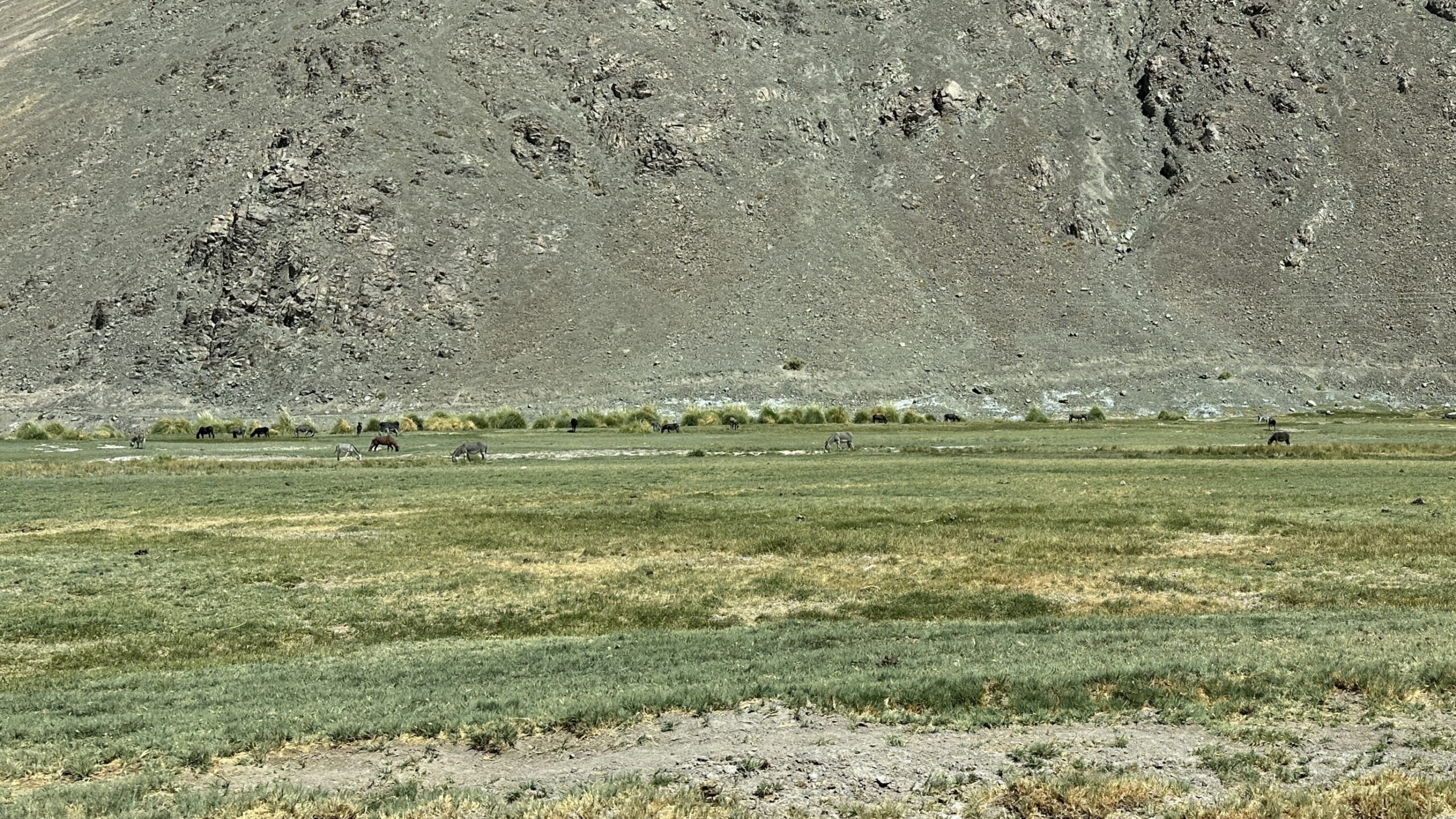 Langsam kommen die Berge und die Straßen werden an einigen Stellen interessant. Hin und wieder sehen wir in den Tälern Pferde oder Esel grasen. Die Täler sind eingebettet in diesen rauchen Bergen.