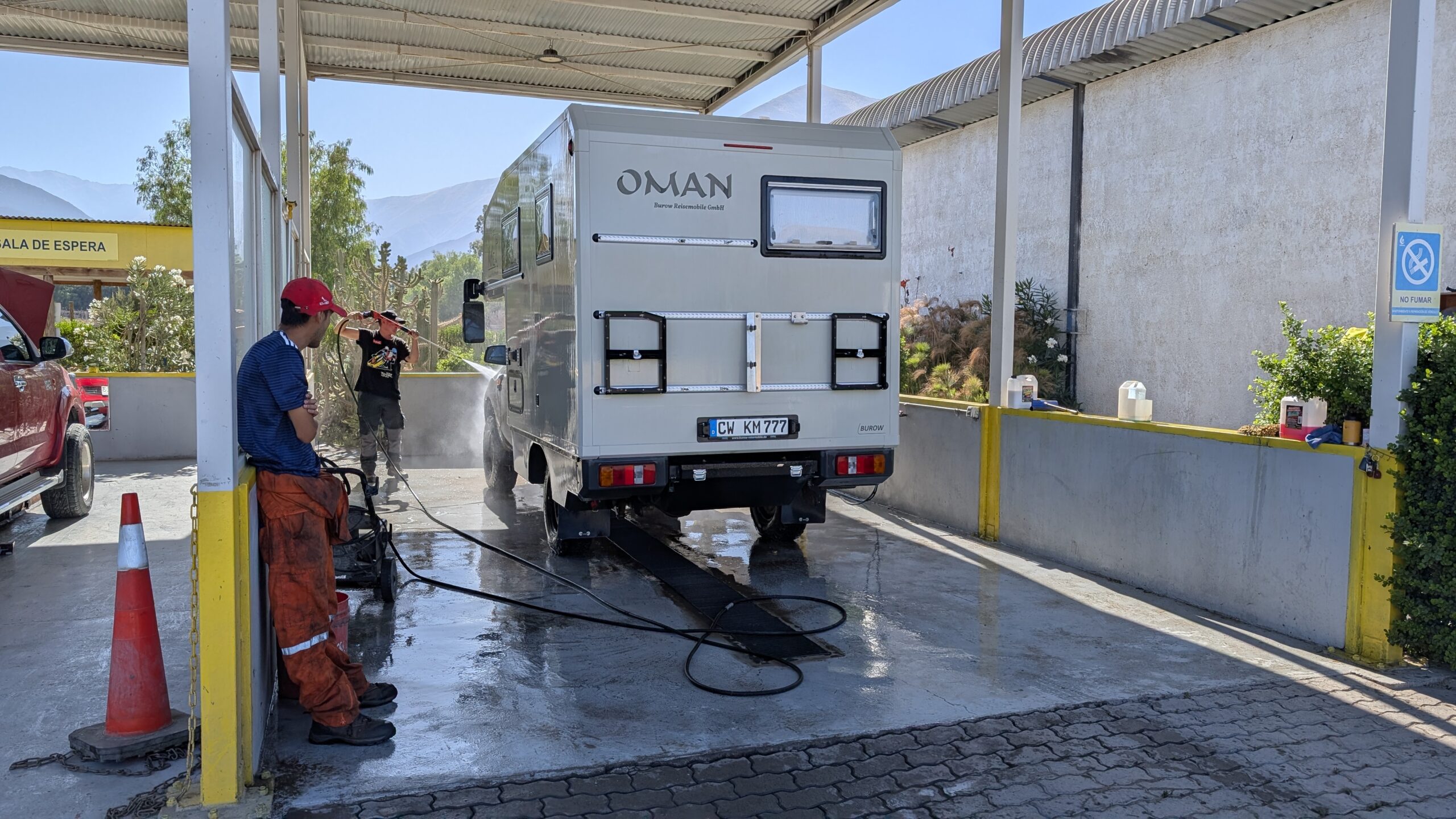 Bevor wir das kleine Städtchen verlassen fahren wir noch zu einer Waschanlage für Bumba. Er brauch auch mal ein Bad.