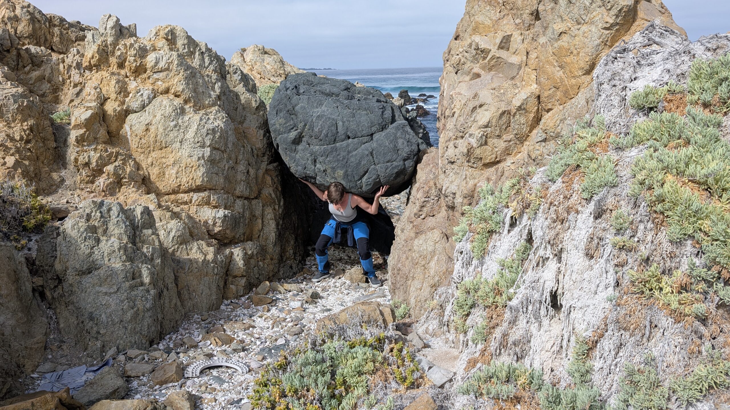 Der Wind ist der Hammer. Wir kommen auf einen relativ ungeschützten Bereich bei unserer Wanderung und wir werden Wort wörtlich weggepustet. Micha macht ein Video von mir, ich werde nach rechts weggedrückt vom Wind und Micha wird ebenfalls von der Böe erfasst und weggeschubst. Wir könnten, mit Regenschirm, Mary Poppins nachahmen.